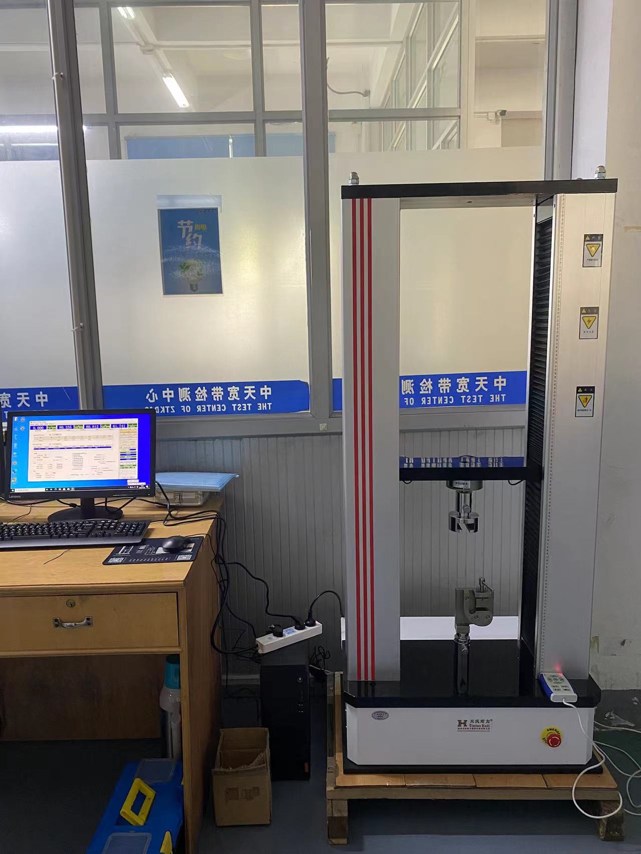 本次中天寬帶技術有限公司采購我司微機控制雙柱拉力試驗機用于測試線纜端子頭的拉力,下面是現場培訓照片: