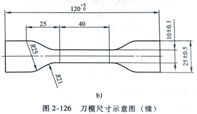 試樣橫截面應為矩形,帶表皮或不帶表皮層,無明顯缺陷。拉伸試樣用下圖所示的兩種刀模之一沖切,試樣厚度為10~15m。
