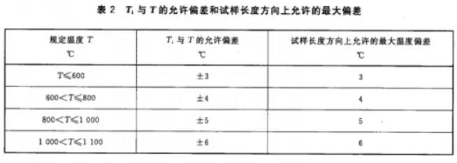 注:允許采用加熱爐各個加熱區(qū)間溫度的間接測量方式來代替直接測量試樣表面溫度,這種方式必須證實能滿足上述偏差的要求。