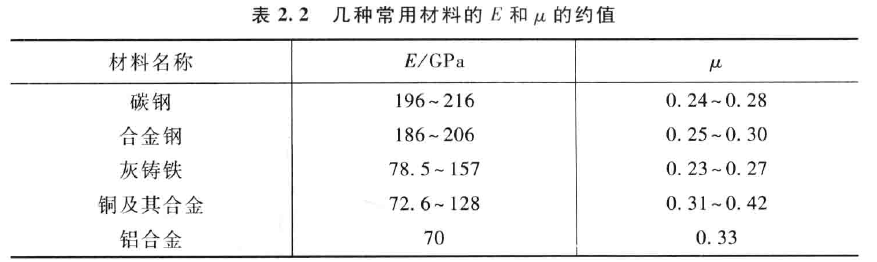 常見材料E和μ的值